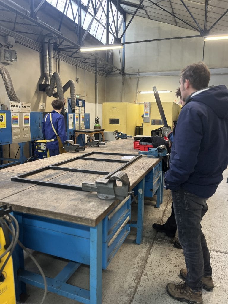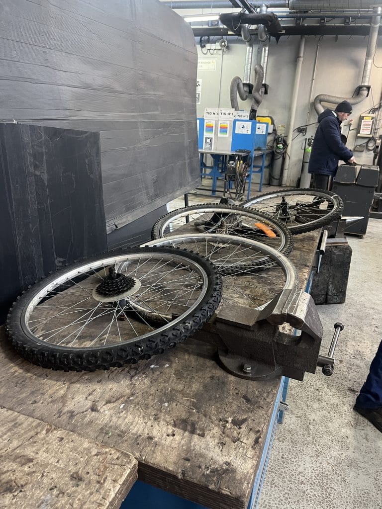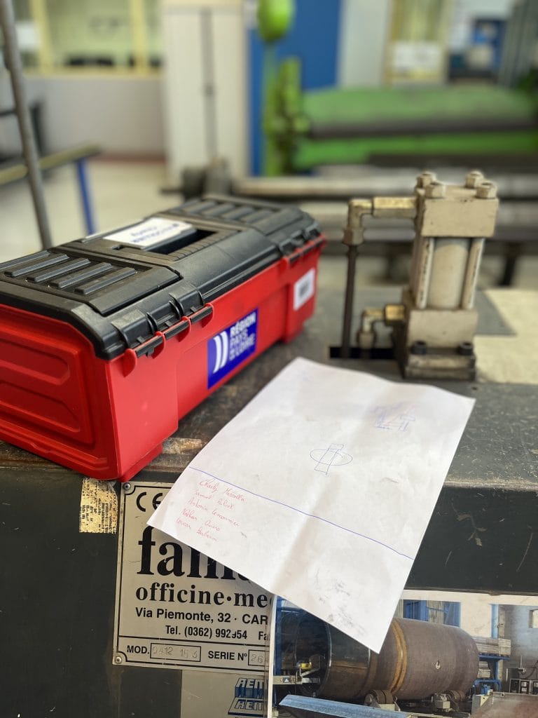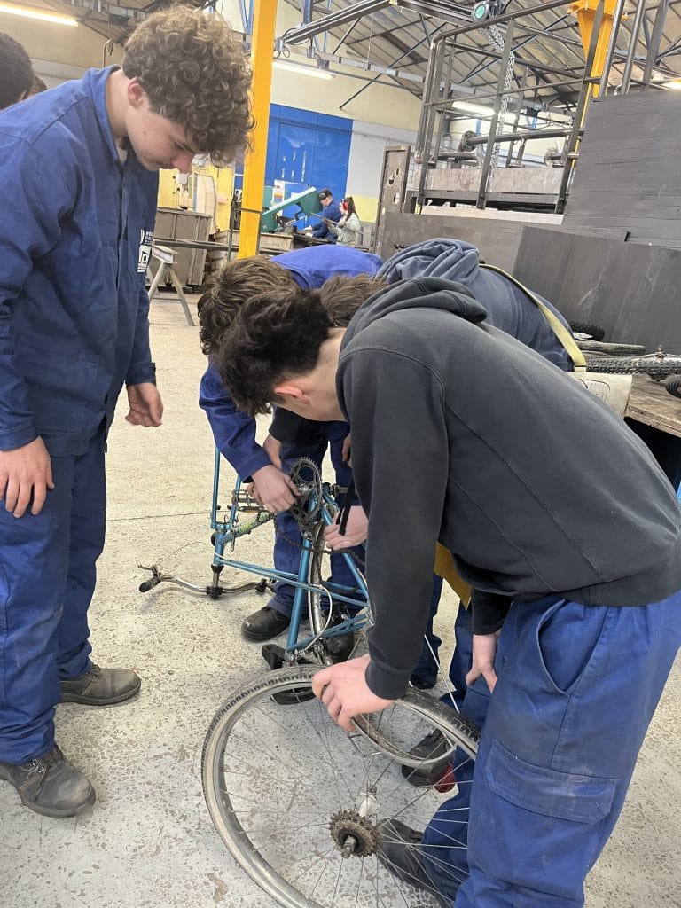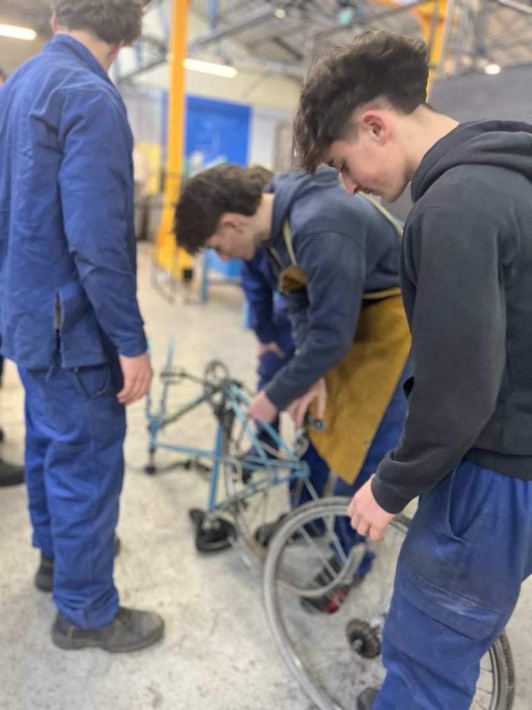 Jeudi 12 février, les élèves de seconde en chaudronnerie industrielle du lycée Léonard de Vinci ont démarré la construction des machines sonores. Des pièces ont été récupérées sur d’anciens vélos par le biais de l’association La Roue Libre : cadrans, roues…. . Les élèves, avaient au préalable, dessinés leurs machines sonores sur papier.